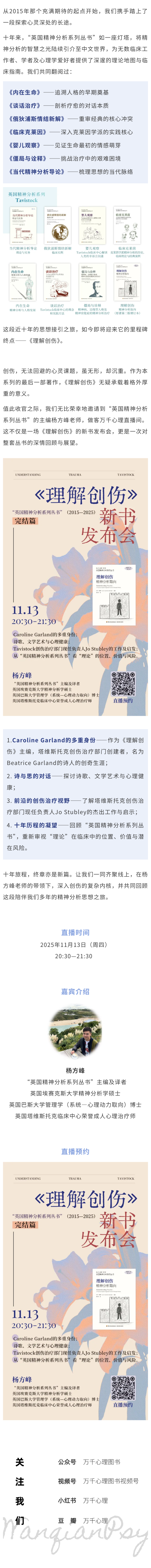 直播 | “英国精神分析系列丛书”(2015-2025)完结篇——《理解创伤》新书发布会