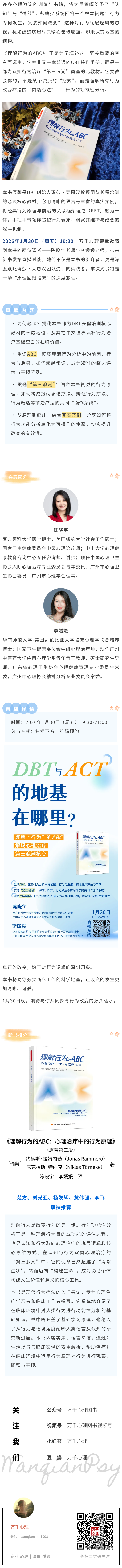 直播 | DBT与ACT的地基在哪里?——聚焦“行为”的ABC解码心理治疗第三浪潮核心