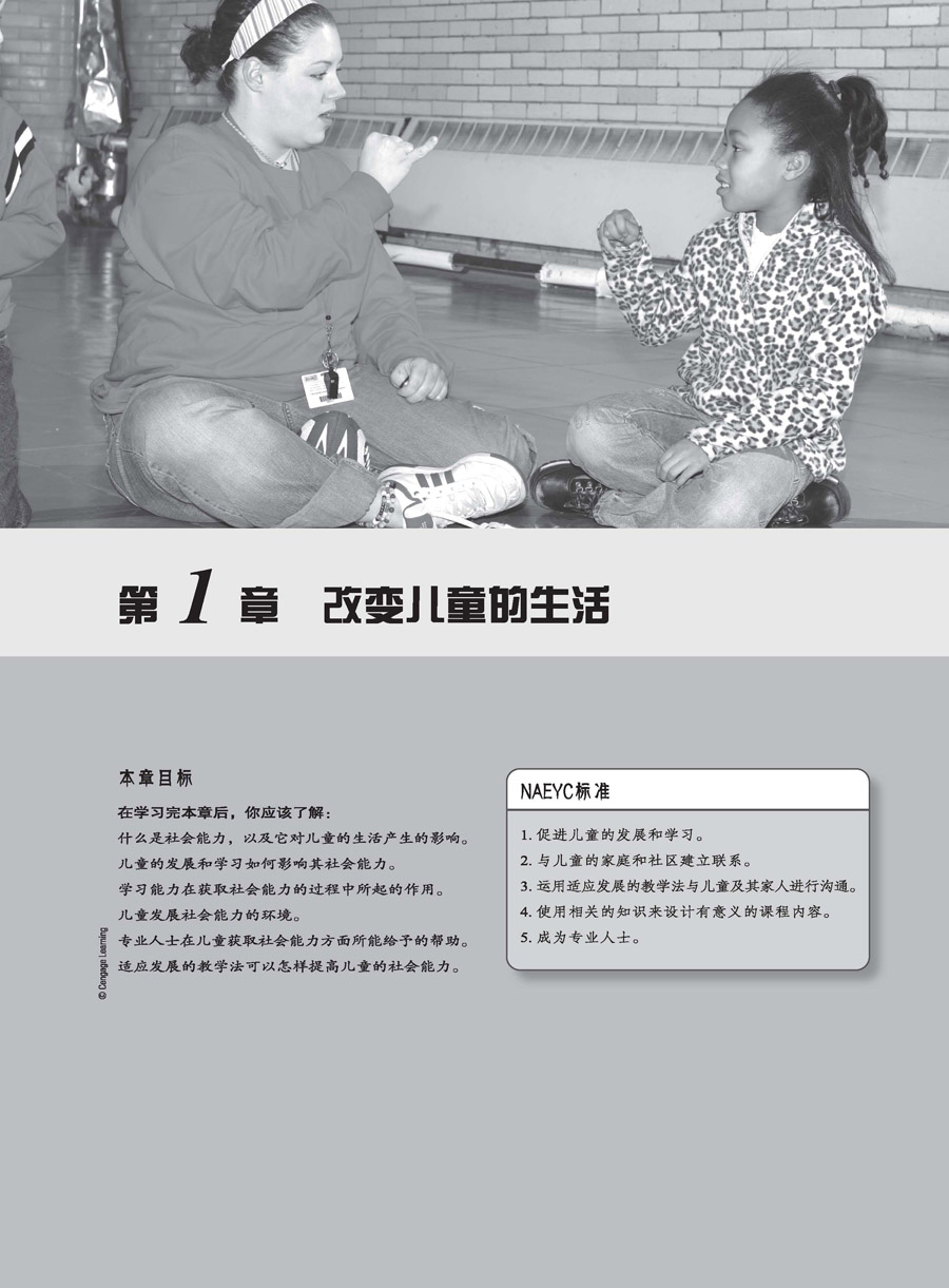 本书将给予学习者在专业实践中指导儿童社会性发展所需的基础知识和技能。我们希望它们能够唤起你对从事这一领域工作的热情和与儿童及其家庭相处的信心。虽然你在本书中阅读到的内容并不能囊括你需要掌握的全部,但它可以为你奠定一个坚实的基础,帮助你形成自己的职业风格。你只需通过这一门课程就能学到或许要花许多年才能体会到的知识和策略。