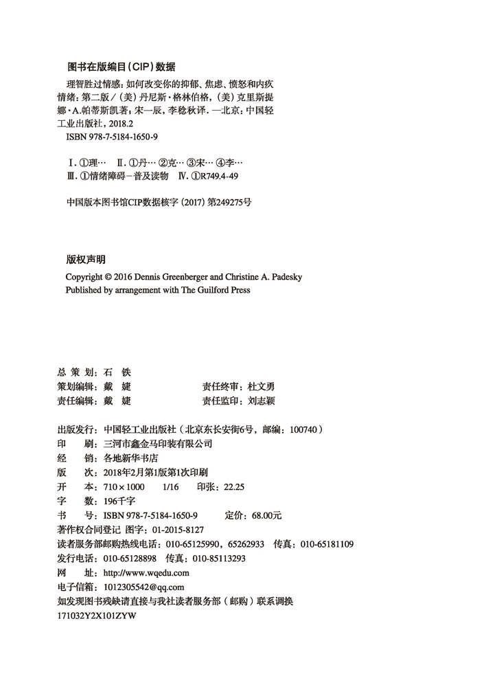 每一个深受情绪困扰的人都应该读这本书。北师大王建平、清华大学李松蔚、认知疗法创立者Aaron Beck联袂推荐