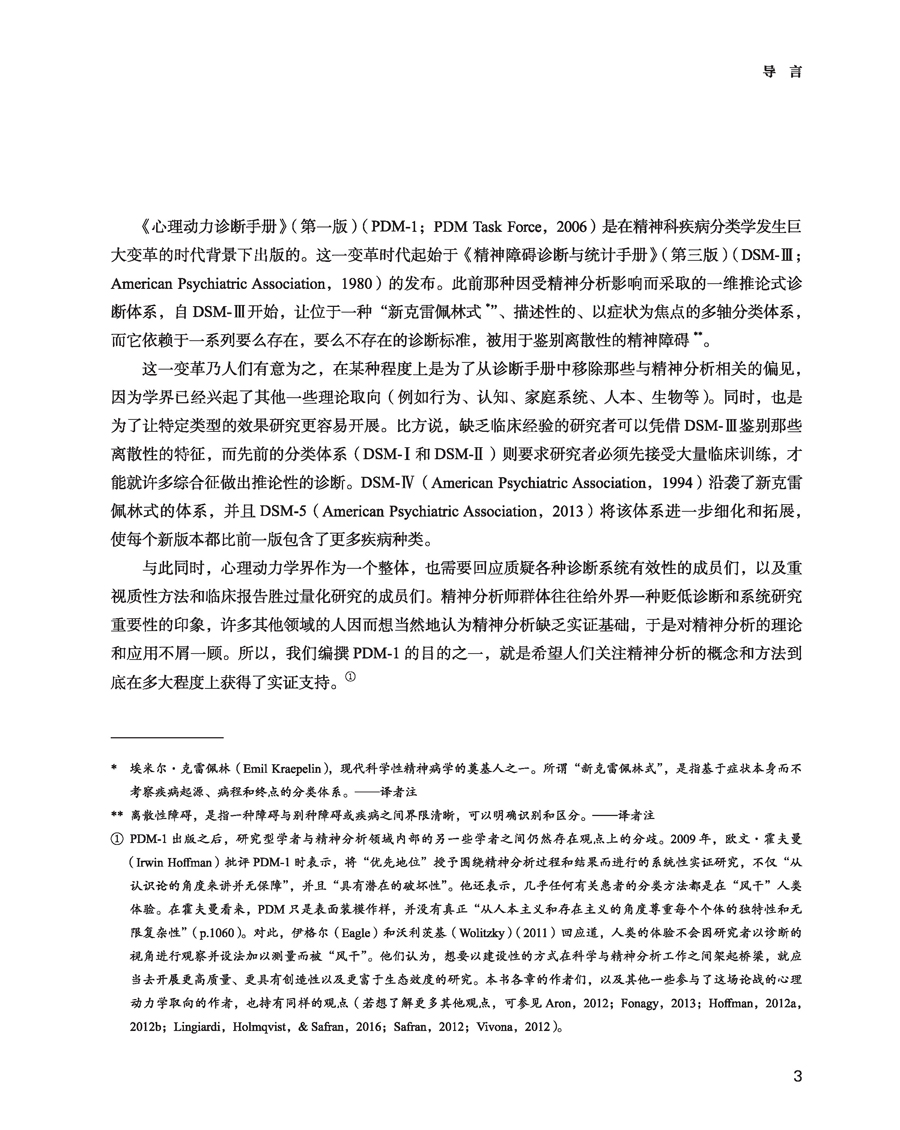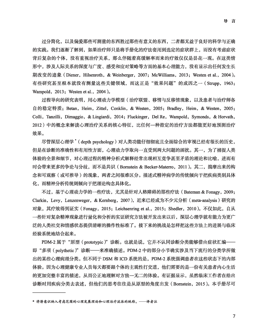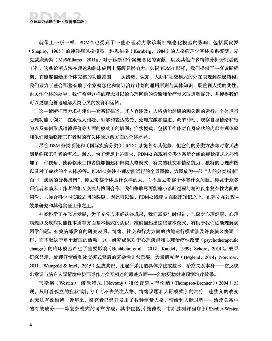 南希·麦克威廉姆斯(Nancy McWilliams) 博士、美国心理学职业委员会认证心理学家,美国新泽西州立罗格斯大学(Rutgers, The State University of New Jersey)应用与职业心理学研究生院客座教授,并于新泽西州私人执业。她是《精神分析心理学》(Psychoanalytic Psychology)杂志的编委会成员,并著有3本心理治疗领域的经典书籍,其中包括获奖作品《精神分析诊断——理解人格结构》(Psychoanalytic Diagnosis: Understanding Personality Structure in the Clinical Process)。麦克威廉姆斯博士是美国精神分析协会的荣誉会员,也曾在马萨诸塞州的奥斯汀·里格斯中心(Austen Riggs Center)担任埃里克森学者(Erikson Scholar)。她曾获得美国心理学协会(American Psychological Association)第39分会(精神分析分会)授予的领导力与学识奖,以及阿巴拉契亚精神分析学会(Appalachian Psychoanalytic Society)授予的汉斯·施特鲁普奖(Hans H. Strupp Award),并在美国心理学协会第42分会(独立执业心理学家分会)罗莎莉·韦斯心理学杰出领导者系列讲座(Dr. Rosalee G. Weiss Lecture for Outstanding Leaders in Psychology)中演讲。她在由美国心理学协会出版的心理动力学治疗视频中进行过3段教学演示,也曾应邀在耶鲁大学医学院和史密斯社工学院的毕业典礼上致辞。