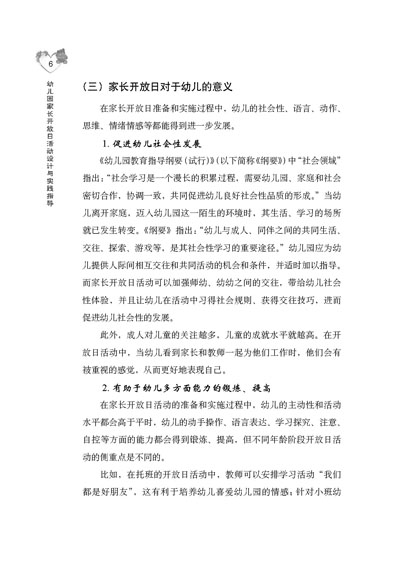 本书十分重视案例的典型性、指导性与可读性,力求使一线教师能够从案例的描述与分析中得到某些启发,促使他们高度关注家长开放日活动的质量和有效性,真正实现通过家长开放日这一有效载体促进家长、教师、幼儿共同成长和发展的目的。