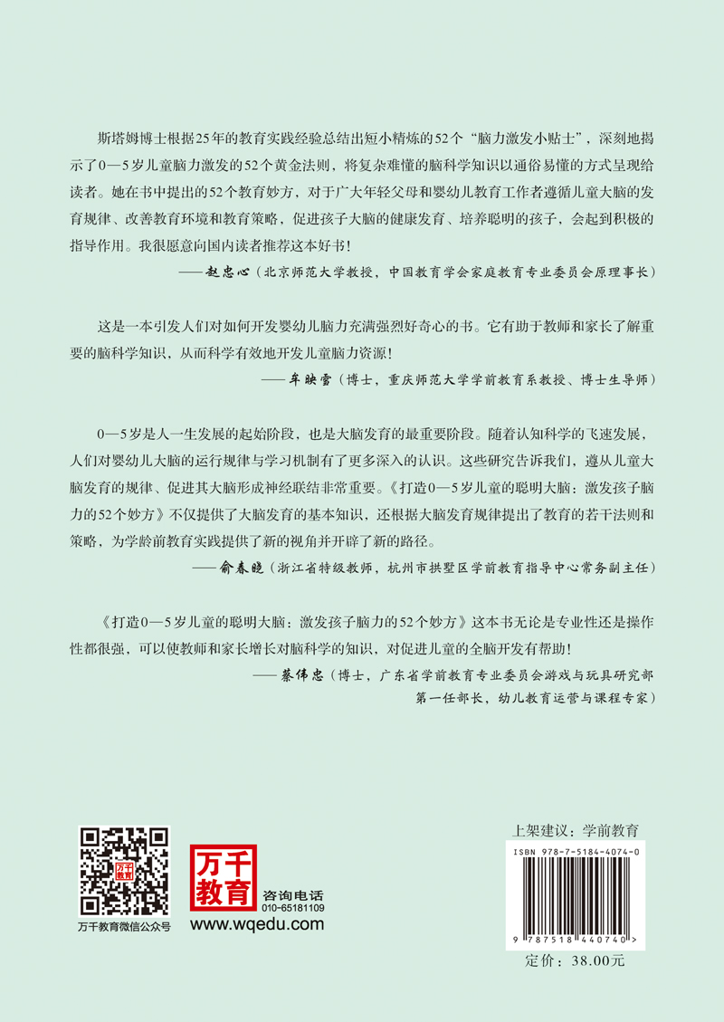 我们应该怎样学以致用? ◆ 对年龄较小的婴幼儿,我们应多说一些鼓励的话。比如:“加油,你可以做到的……坚持尝试!”“做得好!”“你需要我帮帮你吗?” ◆ 对两三岁的幼儿,我们可以说:“干得好!看得出来你真的很努力。”“你已尽最大努力了,我喜欢你这一点!” ◆ 对独立性相对较高且为自己感到骄傲的幼儿园小朋友,我们可以说:“你自己很出色地把这个问题解决了,不想试试别的挑战吗?”或者说:“保持这股劲头。你进步很快。让我知道你是否需要帮助。你可以告诉我你需要什么帮助,也许我能帮上忙。” ◆ 不管在哪个发展阶段,坚忍的心态和积极的学习热情都会激活大脑的奖励系统。为学习新事物而付出的努力会带来生理上的愉悦感。积极的自我评价和内在激励机制也会因此而逐渐成型,这对孩子的发展十分重要。 【推荐资源】 Dweck, Carol. 2007. Mindset: The New Psychology of Success. New York: Random House.