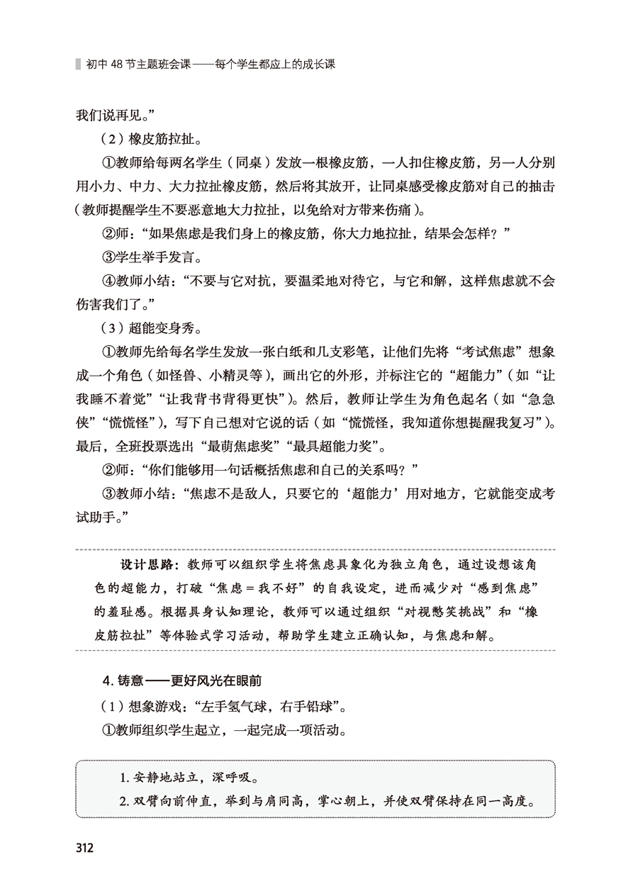 (3)丰富资源赋予效度:本书中的48节班会课涵盖团队协作、自主管理、劳动素养、文化传承、生涯规划、挫折教育等多项关键学生成长议题,另有30余张示例图直观呈现教学细节,扫码可见配套课件,助力一线班主任轻松落地优质课堂。