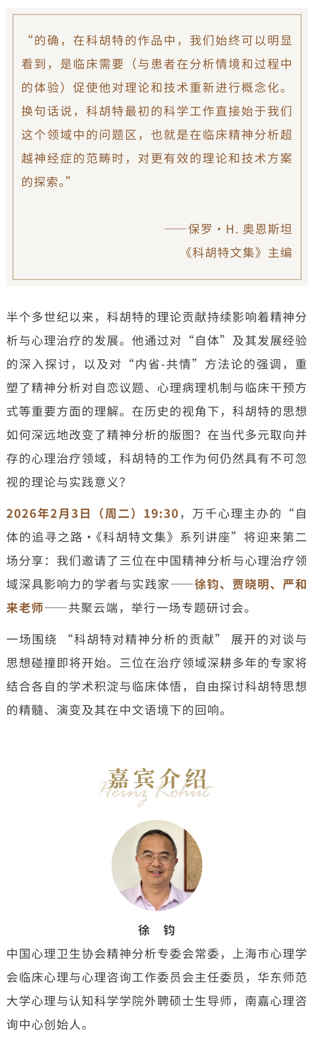 《科胡特文集》专家研讨会 | 徐钧、贾晓明、严和来:科胡特对精神分析的贡献